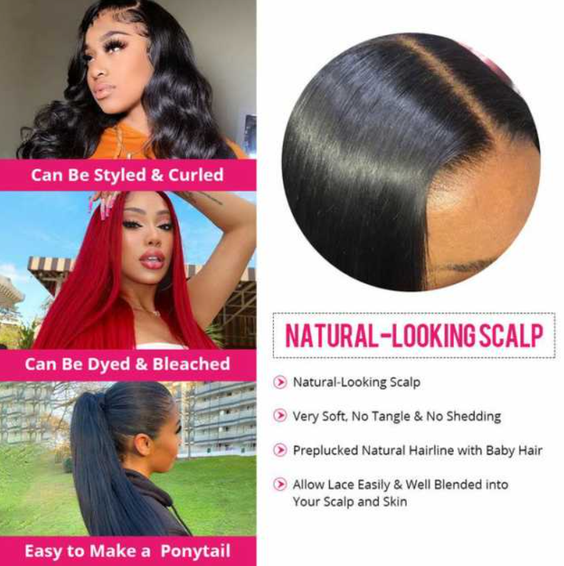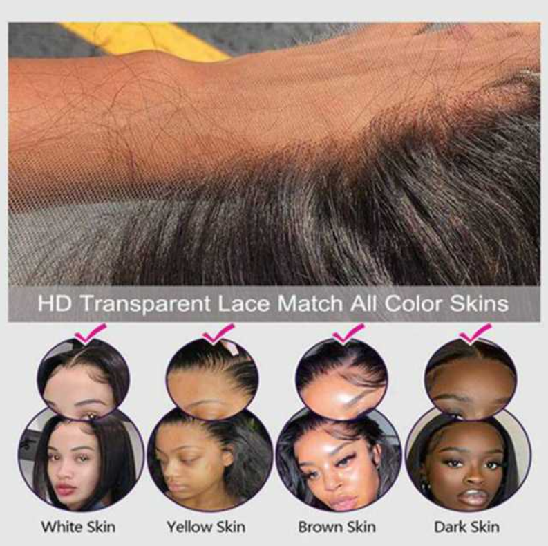 Sarafina’s Glue-less Straight N/C Middle Part , Pre-Cut/ Pre Style HD Lace 24 inches 5*5 Closure 100% Natural Color Indian Virgin Remy Hair. 200% Density, 12A. Can be Bleached and Dyed. – Ready to wear, Style And Go!