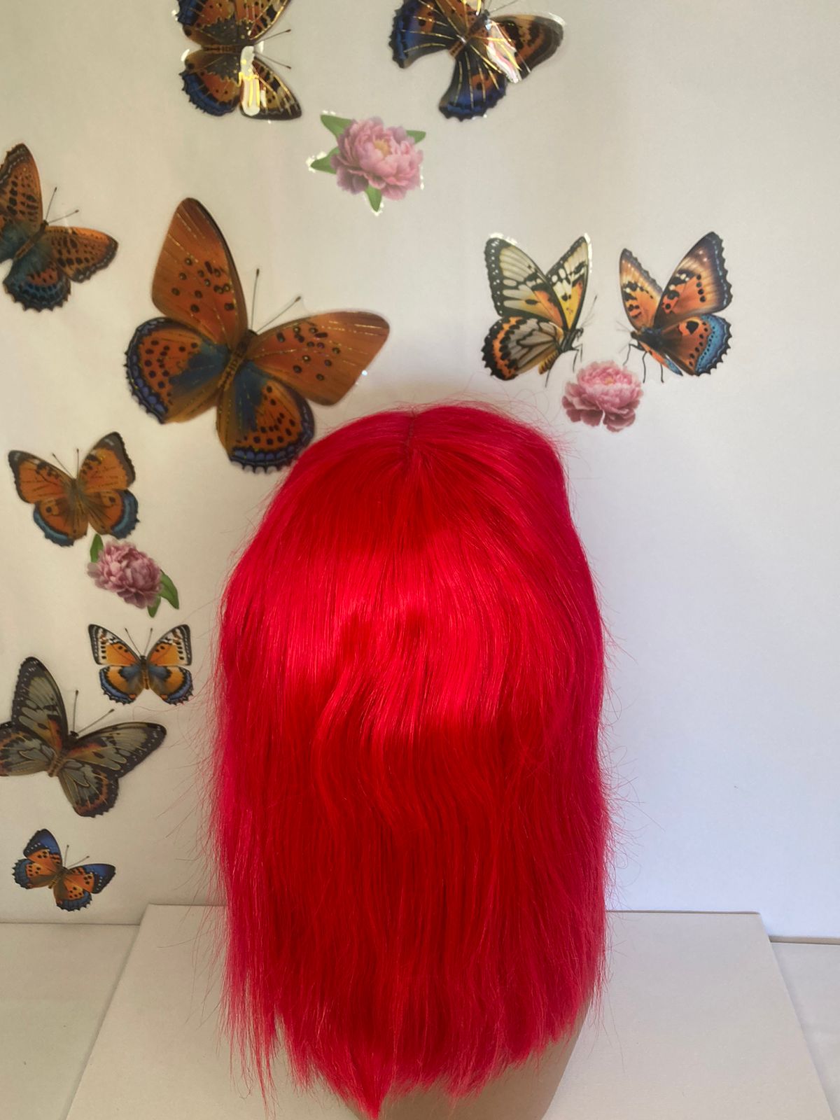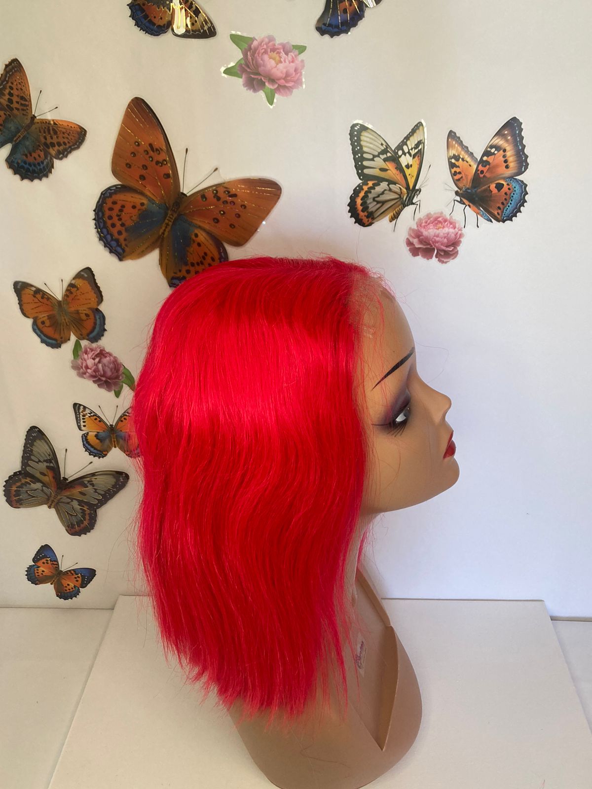 Sarafina’s Glue-less Straight Red Middle Part, Pre-Cut/ Pre Style Transparent Lace BOB 10 inches 4*4 Closure 100% Natural Brazilian Virgin Remy Hair. 200% Density, 12A. Can be Bleached and Dyed. – Ready to wear, style and go!
